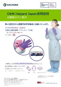 薬剤耐性試験済手袋やガウン、バイザー付きマスクなど、化学療法薬剤への職業性曝露対策に貢献する製品を多数展示いたします。