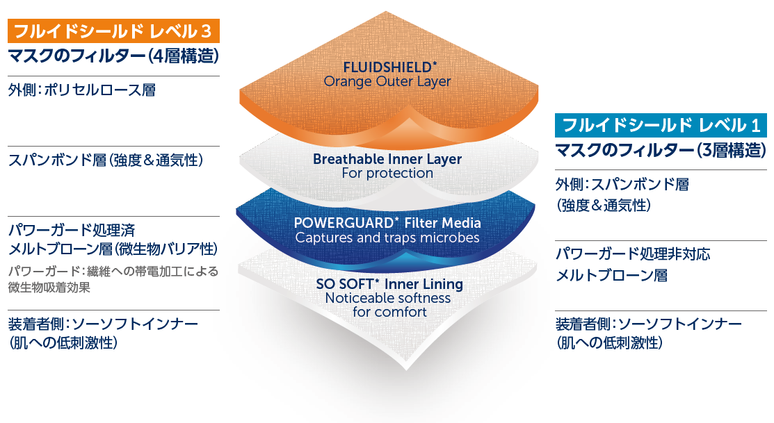 液体曝露リスクの大きさに応じて、より適切なマスクの選択が可能です。