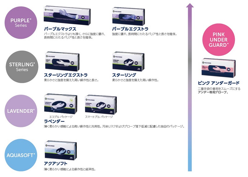 ※ラベンダー ニトリルグローブおよびアクアソフト ニトリルグローブ