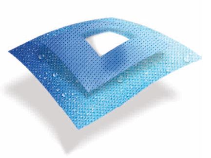 切開創周りに使用している吸水防水シート CONTROL* PLUSは高い吸水性と保水性を持ち、裏面に配置されたラミネートシートが液体などの浸透や透過をしっかりと防ぎます。